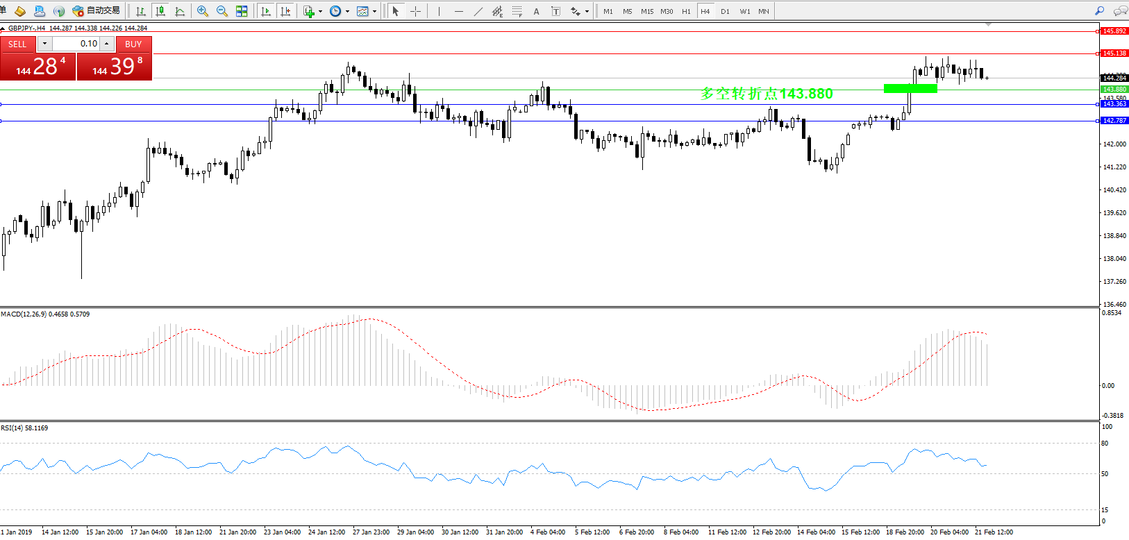 交易策略:143.880上方看涨,目标145.138145.892