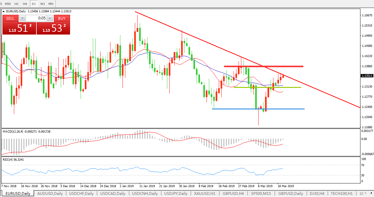 交易策略:在1.1300之上,看涨,目标价位为 1.1370,然后为1 .1420。