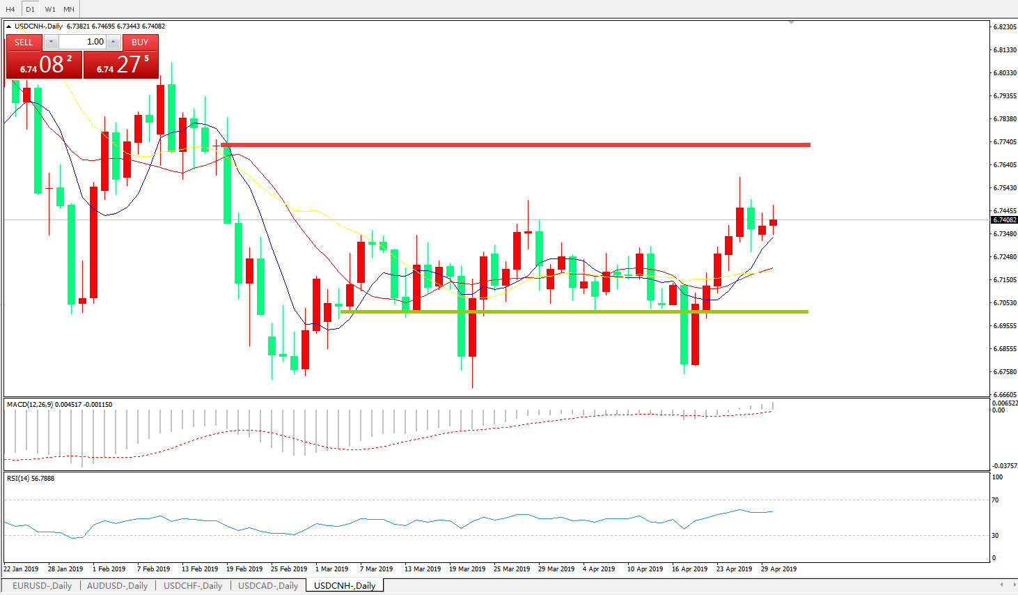 备选策略: 6.6990之下,看跌,目标价位为6.6730,然后为6.6325