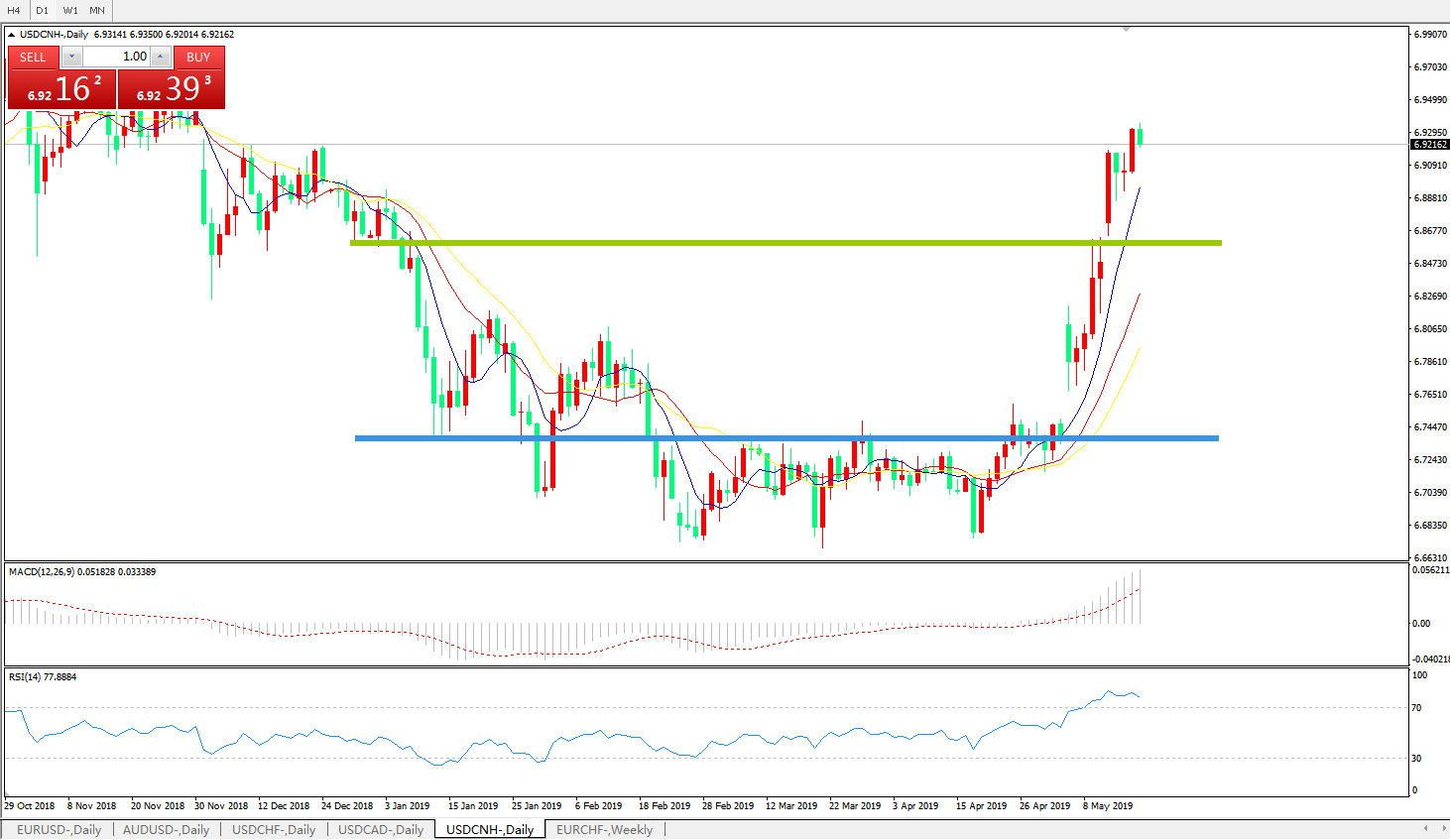 技术面简析:日线图均线呈有序多头排列看多,MACD在0轴上方运行且动能柱0轴上方持续放量,RSI快速走升后超买区域走平,汇价强力上攻后维持整理态势,预计短期汇价有进一步上行空间,重点关注中美贸易争端后续进展。