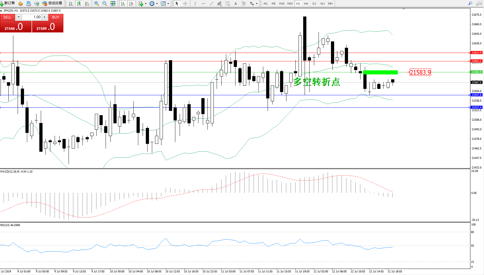 日经指数JPN225——1小时K线图: