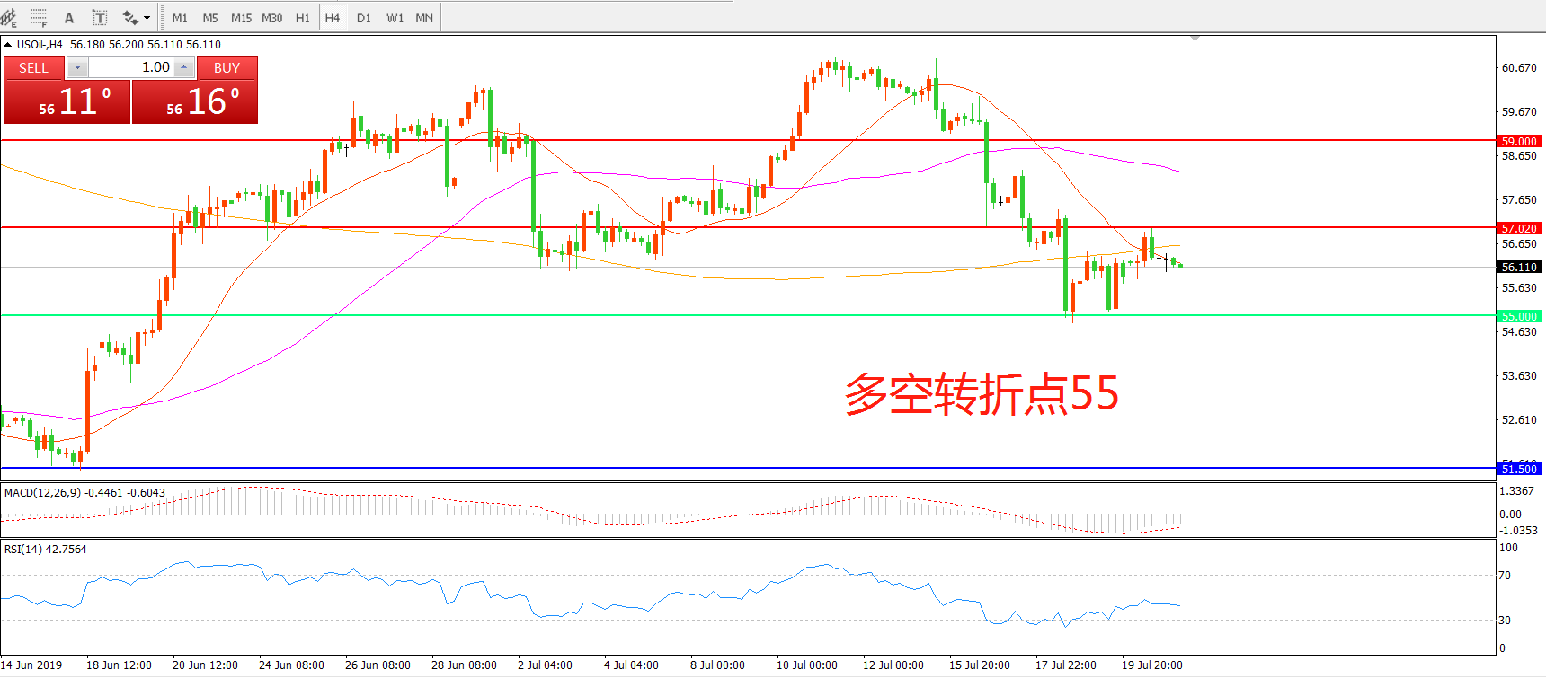 多空转折点:55.00