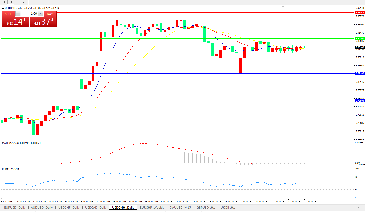 技术面简析:日图均线继续粘合无方向,MACD徘徊在0轴附近且动能柱若隐若现,RSI趋于走平,行情缺乏关键信息指引,预计短期汇价将继续整理或向下修正,中期关注6.9010附近多空转折区域压制是否有效及中美贸易谈判最新进展。