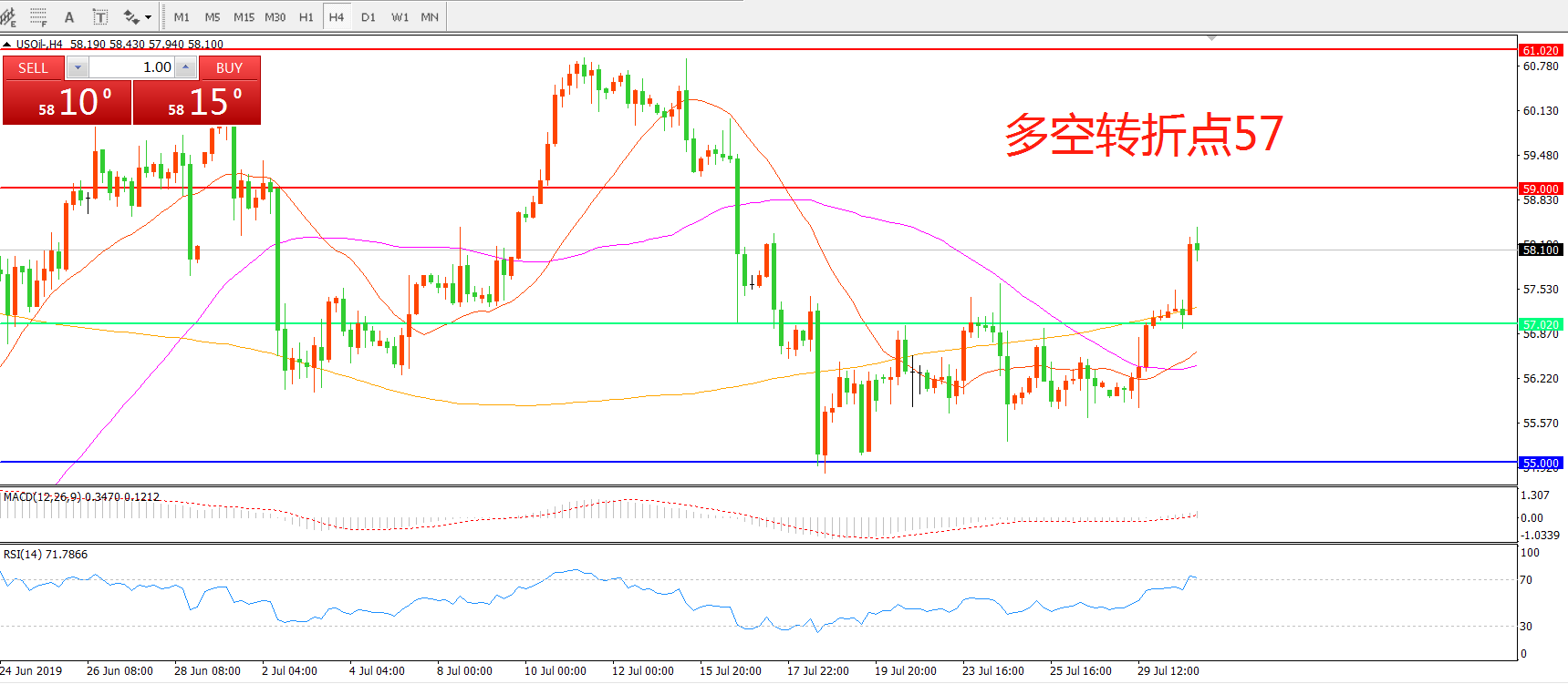 交易策略:在57.00之上看涨,目标59.00   61.00