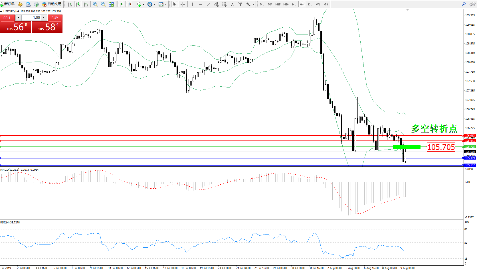 多空转折点:105.705