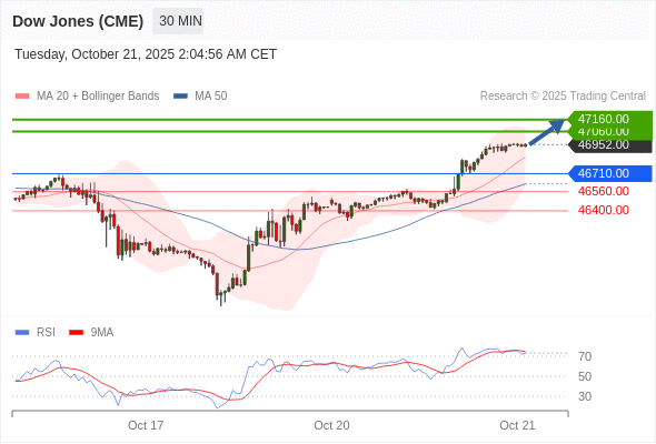 在 46710.00 之上,看涨,目标价位为 47060.00 ,然后为 47160.00 。