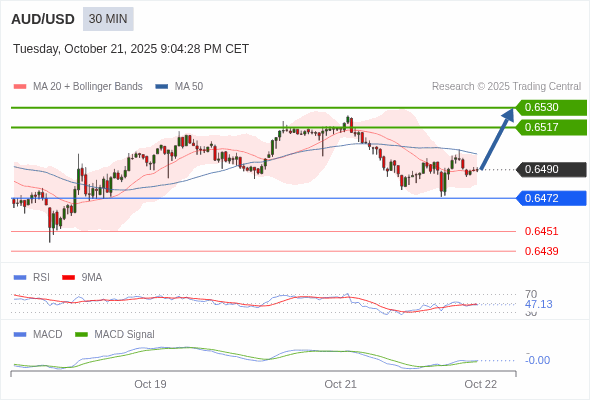 澳元/美元 当日内 : 有上涨的可能,目标价位定在 0.6530 。