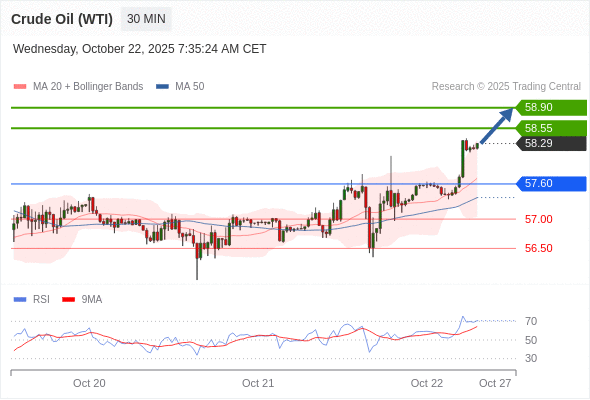 在 57.60 之上,看涨,目标价位为 58.55 ,然后为 58.90 。