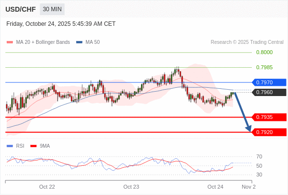 在 0.7970 之下,看跌,目标价位为 0.7935 ,然后为 0.7920 。