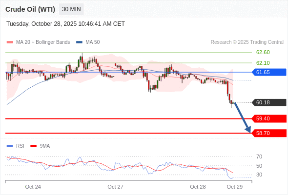 在 61.65 之下,看跌,目标价位为 59.40 ,然后为 58.70 。