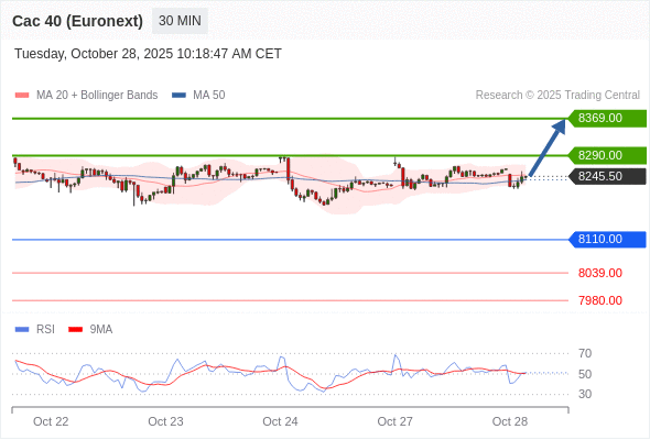 法国CAC指数期货 (Euronext) (X5) 当日内: 在8110.00之上,看涨。