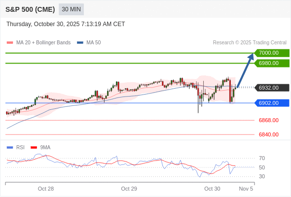 交易策略: 在 6902.00 之上,看涨,目标价位为 6980.00 ,然后为 7000.00 。