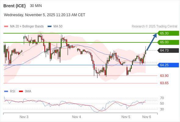 在 64.25 之上,看涨,目标价位为 65.00 ,然后为 65.30 。