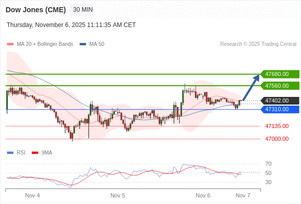 在 47310.00 之上,看涨,目标价位为 47560.00 ,然后为 47680.00 。