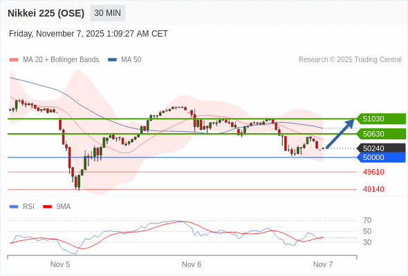 在 50000 之上,看涨,目标价位为 50630 ,然后为 51030 。