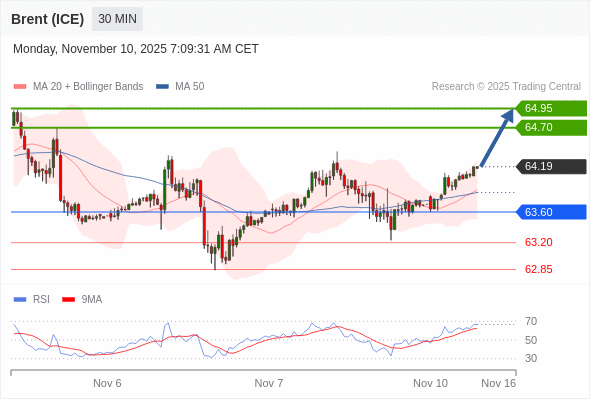 在 63.60 之上,看涨,目标价位为 64.70 ,然后为 64.95 。