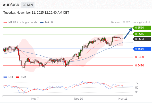 在 0.6510 之上,看涨,目标价位为 0.6545 ,然后为 0.6560 。