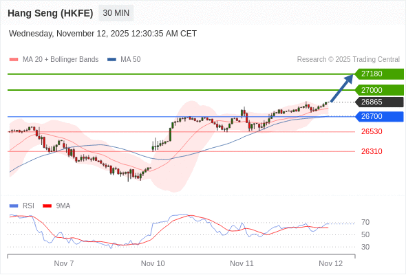 在 26700 之上,看涨,目标价位为 27000 ,然后为 27180 。