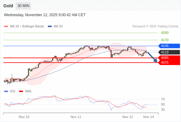 在 4145 之下,看跌,目标价位为 4095 ,然后为 4075 。