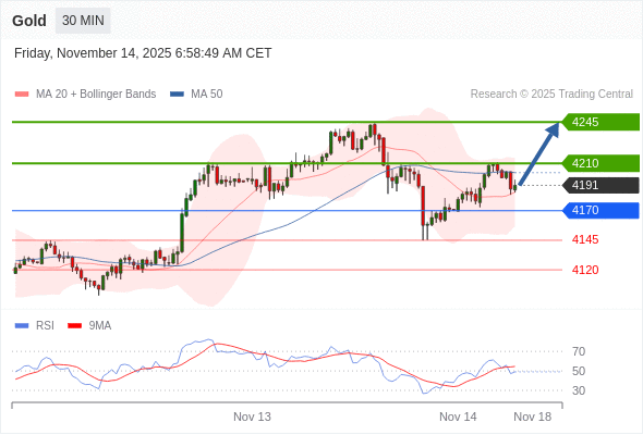在 4170 之上,看涨,目标价位为 4210 ,然后为 4245 。