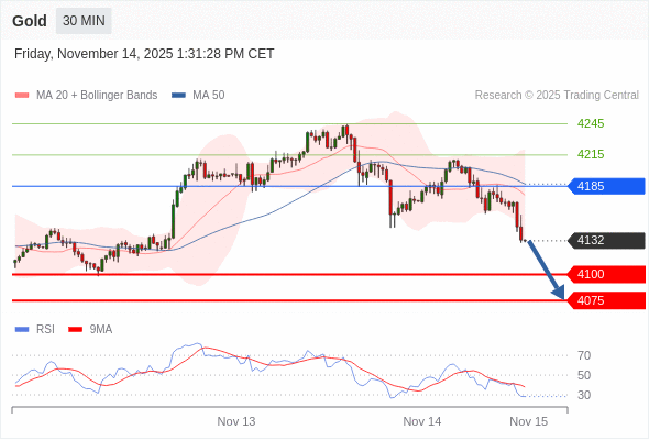 在 4185 之下,看跌,目标价位为 4100 ,然后为 4075 。