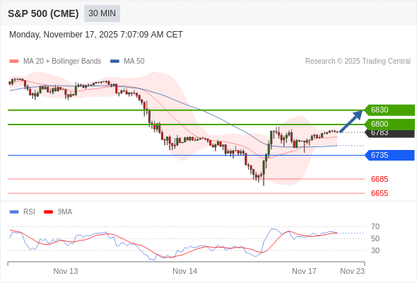 在 6735 之上,看涨,目标价位为 6800 ,然后为 6830 。