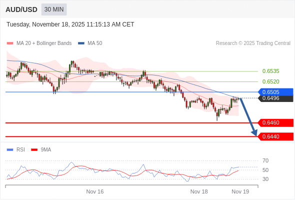 交易策略: 在 0.6505 之下,看跌,目标价位为 0.6460 ,然后为 0.6440 。