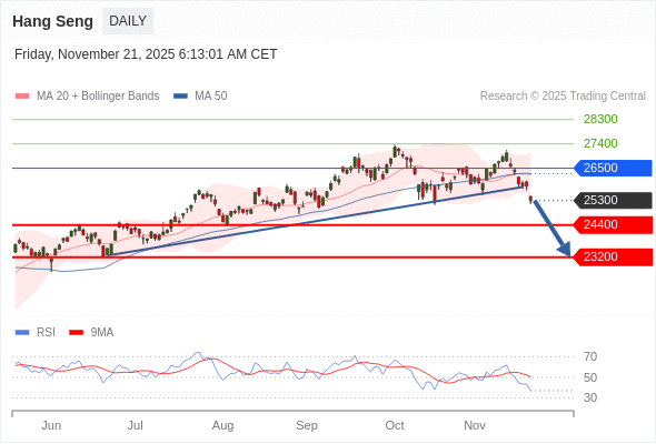 恒生指数 短线: 短期调整。