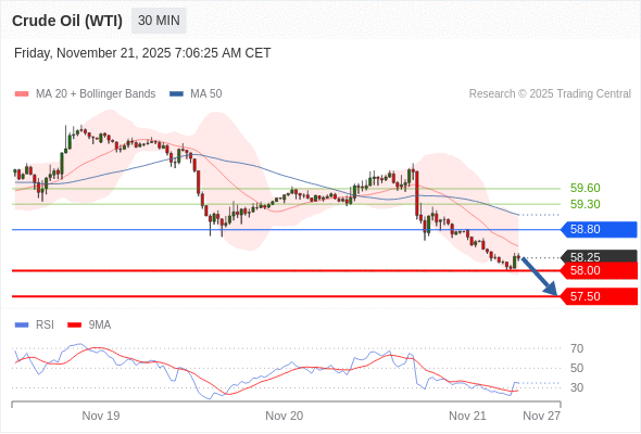 在 58.80 之下,看跌,目标价位为 58.00 ,然后为 57.50 。