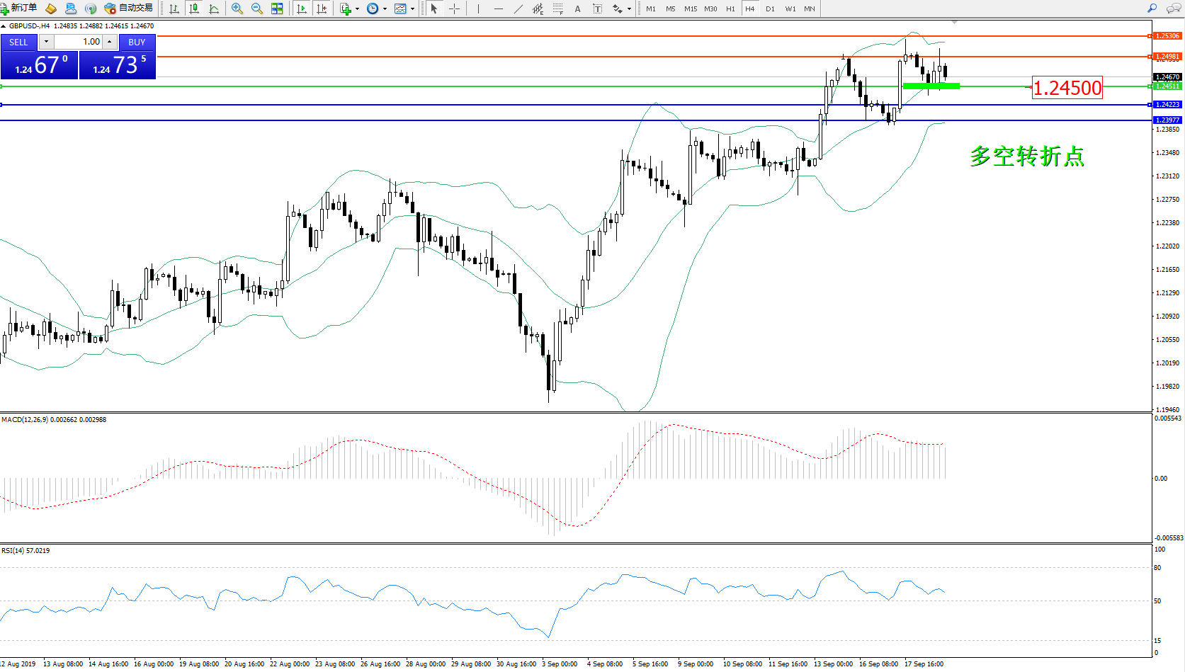 交易策略:1.24500上方看涨,目标1.24981、1.25306