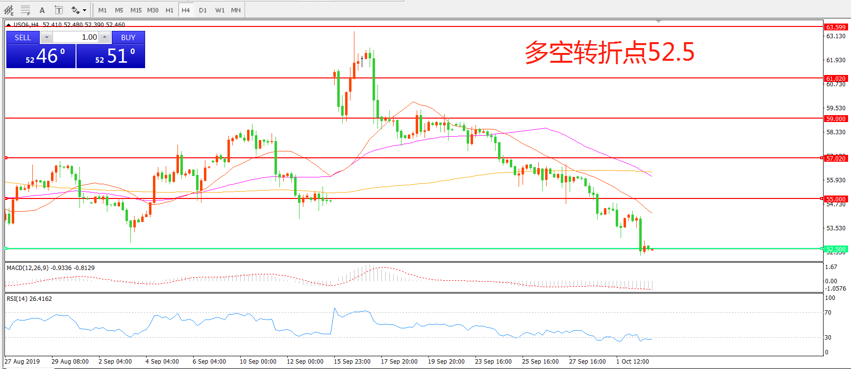 交易策略: 在52.50之下看跌,目标50.00    48.00