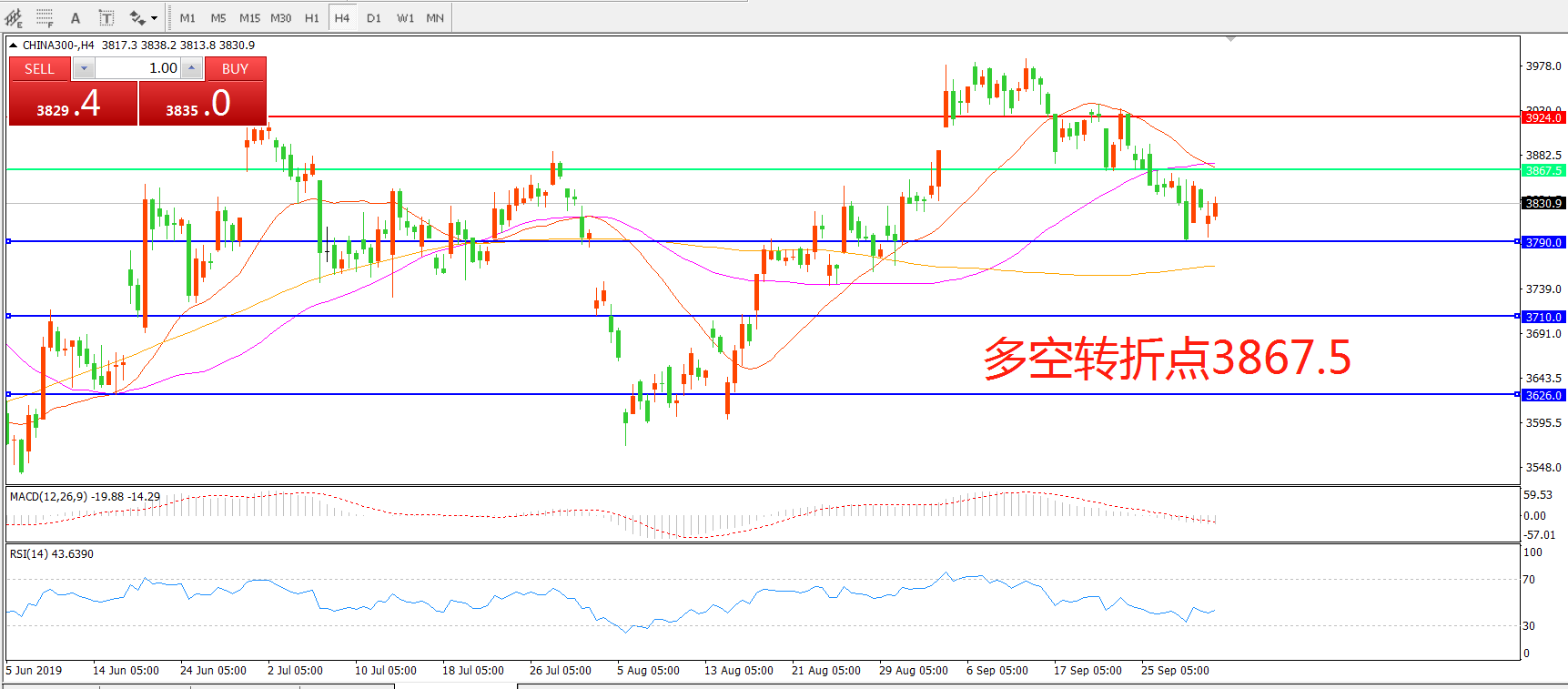沪深300指数CHINA300 4小时图
