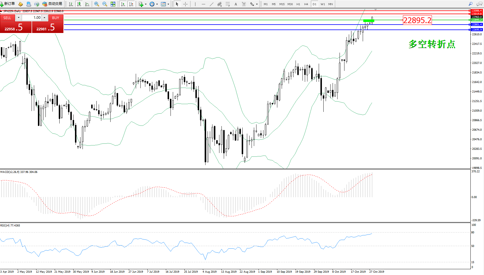 日经225指数1028日(周一)收盘上涨55.69点,涨幅0.24%,报22855.50点。日本央行维持各期限购债规模不变。日本财政大臣麻生太郎表示,市场可能反应过度,日本企业的基本面良好。“市场可能体现了一部分国际贸易不确定性,但我还没有到特别担心的程度。”日本已不再处于通缩衰退,“六年前资产价格下跌让我们看到了通缩,而现在基本工资上升、企业扩大资本开支,从现在开始我们需要解决的问题是企业囤积现金的行为”。
