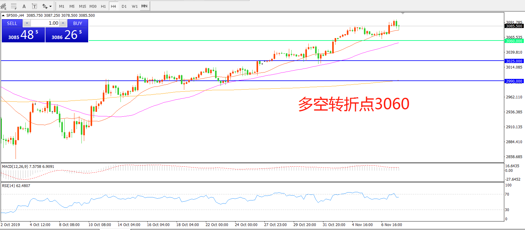 周四(11月7日),中国商务部表示过去两周中美双方牵头人就妥善解决各自核心关切,进行了认真、建设性的讨论,同意随协议进展,分阶段取消加征关税。这一消息令一度消沉的市场风险偏好情绪重新得到提振,标普500稳步上行,收报3085.48点。美国总统特朗普在推特上发表推文称:“今天股市大幅上涨。一个新的记录。享受吧!”大型科技股整体强势,谷歌涨1.32%,苹果涨1.15%,中概股方面,爱奇艺和百度分别暴涨14.55%和13.52%。