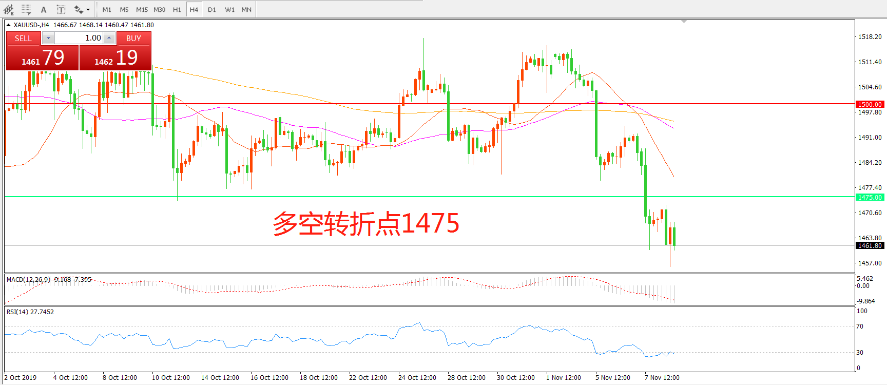 交易策略:在1475.00之下看跌,目标1450.00 1400.00