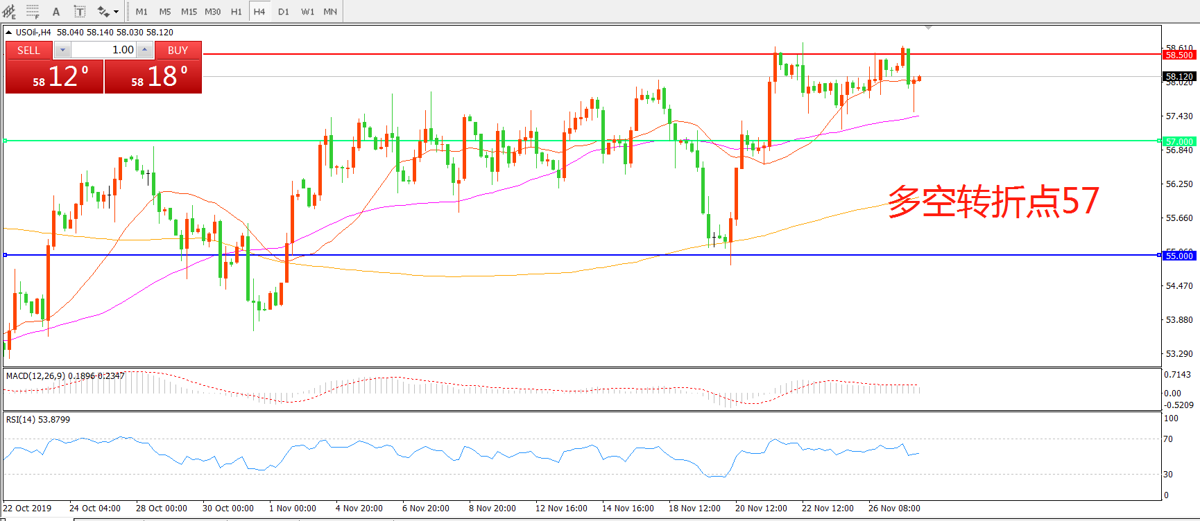 交易策略:在57.00之上看涨,目标58.50       62.00