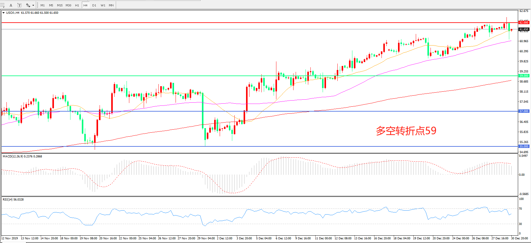 交易策略: 在59.00 之上看涨,目标62.00       65.00