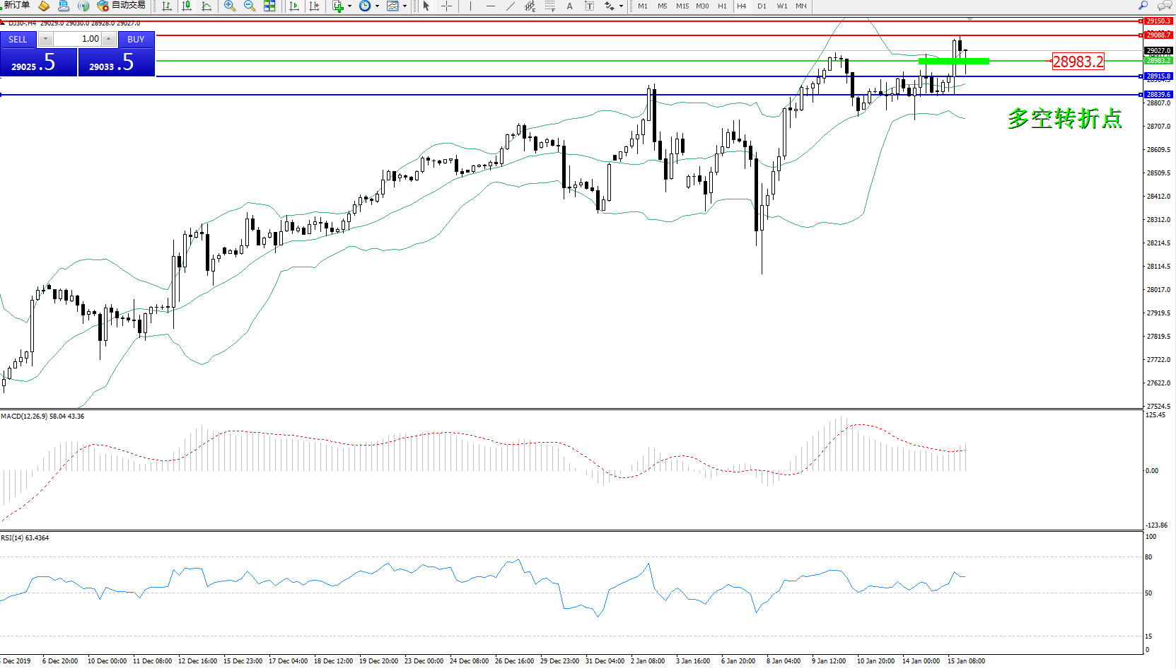 道琼斯指数115日(周三)收盘上涨90.90点,涨幅0.31%,报29030.55点。全球主要股市指数攀升至纪录新高,美元兑一篮子主要货币走软;美国和中国签署了初步贸易协定,将降低一些关税,并促使中国购买更多的美国商品和服务;不过,该协议将保留对美国制造商使用的价值2500亿美元的中国工业产品和零部件征收25%的关税。