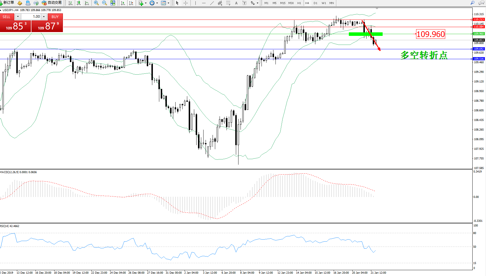 美元兑日元在周二(121)亚洲时段早盘录得快速跳跌,此后继续延续颓势,跌至109.89这一上周四以来的新低。日内亚洲股市普遍出现大幅下挫,此状况挫伤了全球投资者的风险偏好情绪,令避险货币日元受到热捧; 而日本央行行长黑田东彦此后发布了基调消极的措辞,也令投资者风险偏好情绪进一步受挫。上周,受中美一阶段贸易协议达成带来的持续乐观情绪影响,亚洲金融市场情绪曾普遍乐观。但眼下,对区域及全球经济前景的顾虑重新升温,却令避险再度成为投资者交易行动的首选。此外,在农历新年来临在即之时,亚洲投资者的操作方向也趋于保守; 日内的跌势也令美元兑日元短线强势的趋势进一步受挫,下方关键支撑下看上周三低位109.79,跌破后将下探109.45一线,届时将确认短线头部形态,反之,若汇价日收盘仍重新升至5日均线110.07上方,则说明多头力度仍然强劲,后市仍有续涨动能