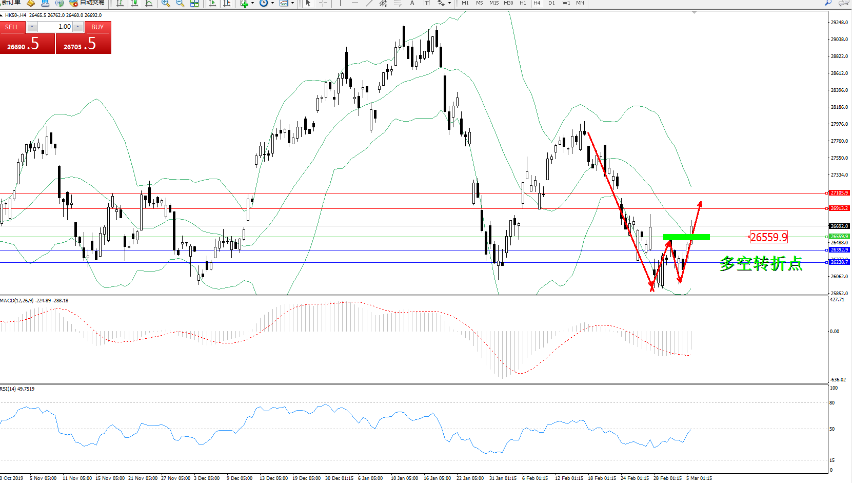 香港恒生指数35日(周四)收盘上涨545.80点,涨幅2.08%,报26767.87点;隔夜美股大涨,随着疫情持续趋于缓和,复工潮来临,行业或加快复苏。港A两地市场齐升,亚太股市收盘全线走高。港股主要股指高开上涨,,恒指大涨550点。市场信心一片大好,行业板块近乎集体上涨,腾讯、瑞声等主要蓝筹皆大涨。主板成交量为13226.28亿港元,港股通净流入68.74亿港元。美联储的大幅降息,反而给美股市场带来恐慌,但恐慌过后,市场开始缓解过来。情绪是需要有事件来推动的,这个因素就是来自于这几天反复强调的美国超级周二的初选。