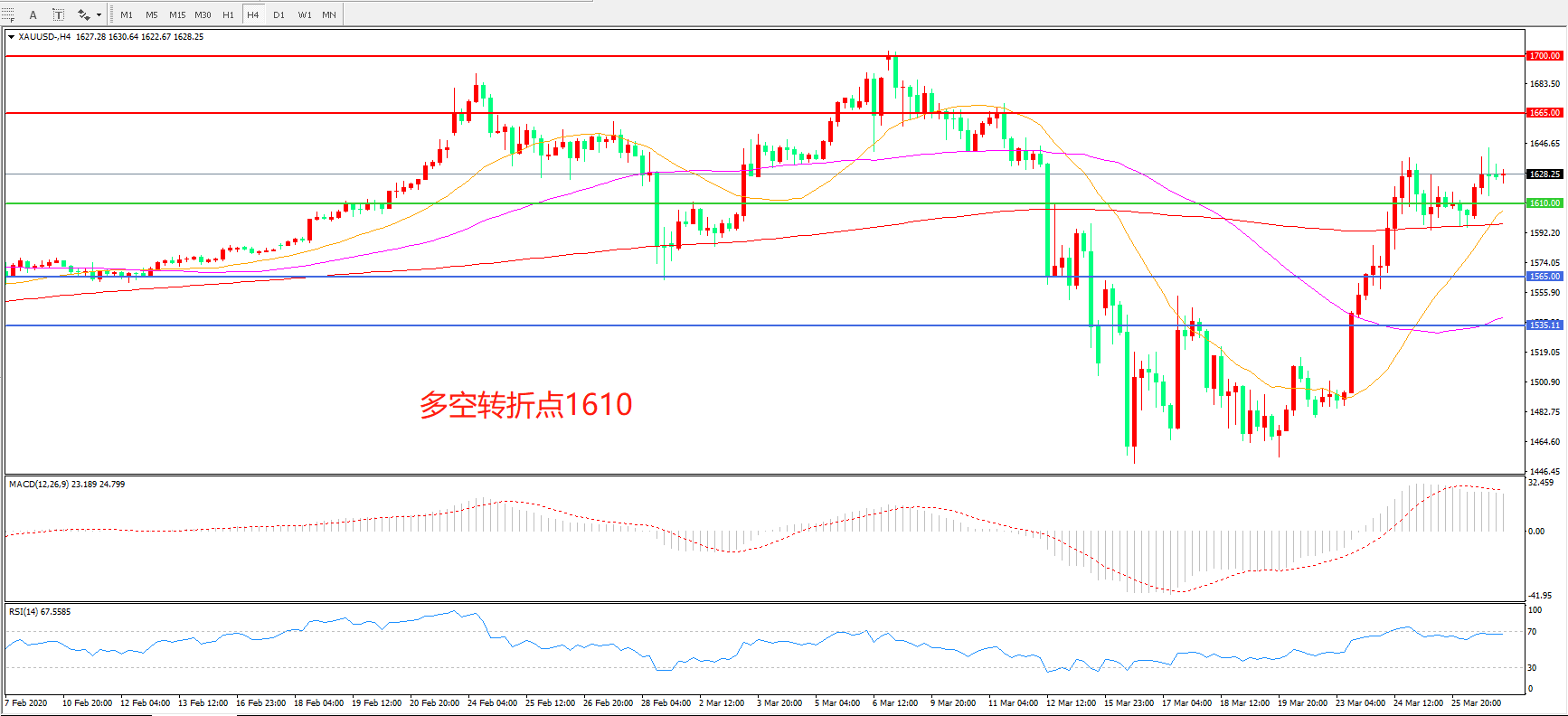 备选策略:在1610.00之下看跌,目标1565.00 1535.00