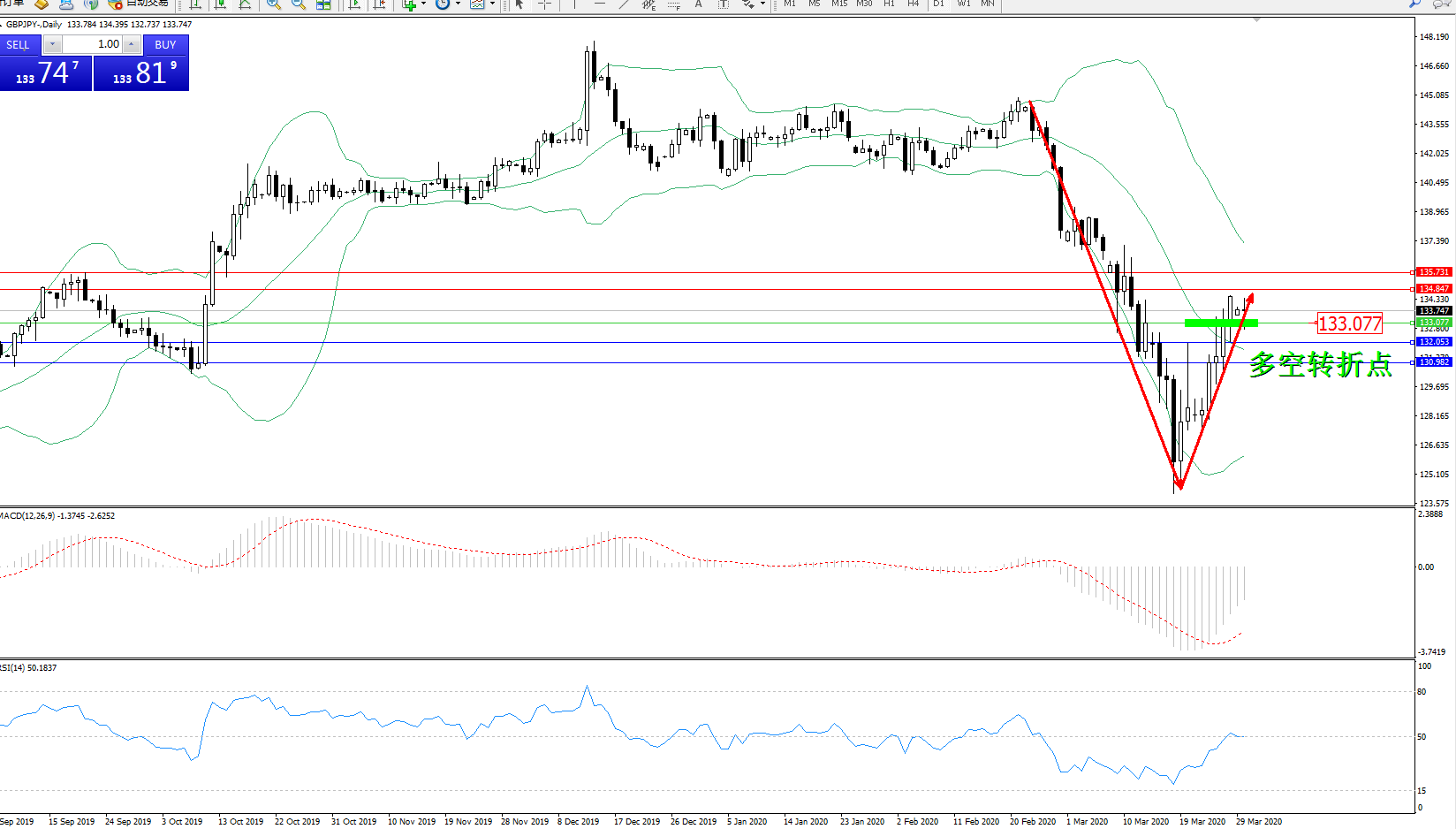 多空转折点:133.077