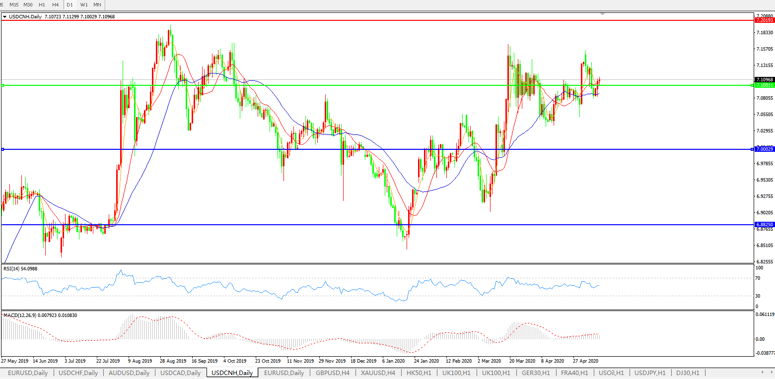 交易策略: 在7.1000之上,看涨,目标价位为7.2000,然后为7.3000。