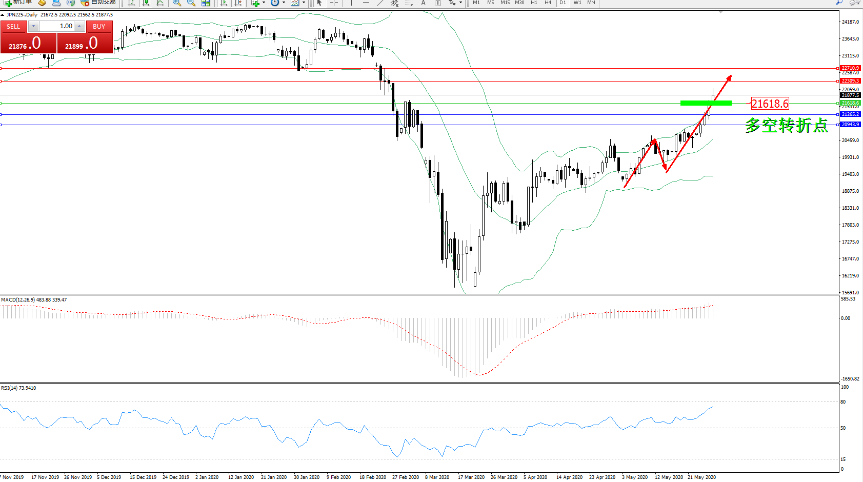 日经225指数5月28日(周四)收盘上涨494.77点,涨幅2.31%,报21914.00点。全球贸易风险上升,亚洲股市整体承压,位于东京小金井市的一家医院出现了3例新冠肺炎确诊病例,另外还有18名患者出现发热症状。这可能是东京解除紧急状态后发生的首次集体感染。日本内阁官房长官菅义伟:日本将于周五恢复全面参与内阁会议,新冠病毒集群响应小组已被派往北九州。眼下的这场新冠疫情已经造成了损失,各国刺激计划将是关键所在;在全球经济存在巨大不确定性之际,2020年吸引海外投资的竞争将更加激烈。