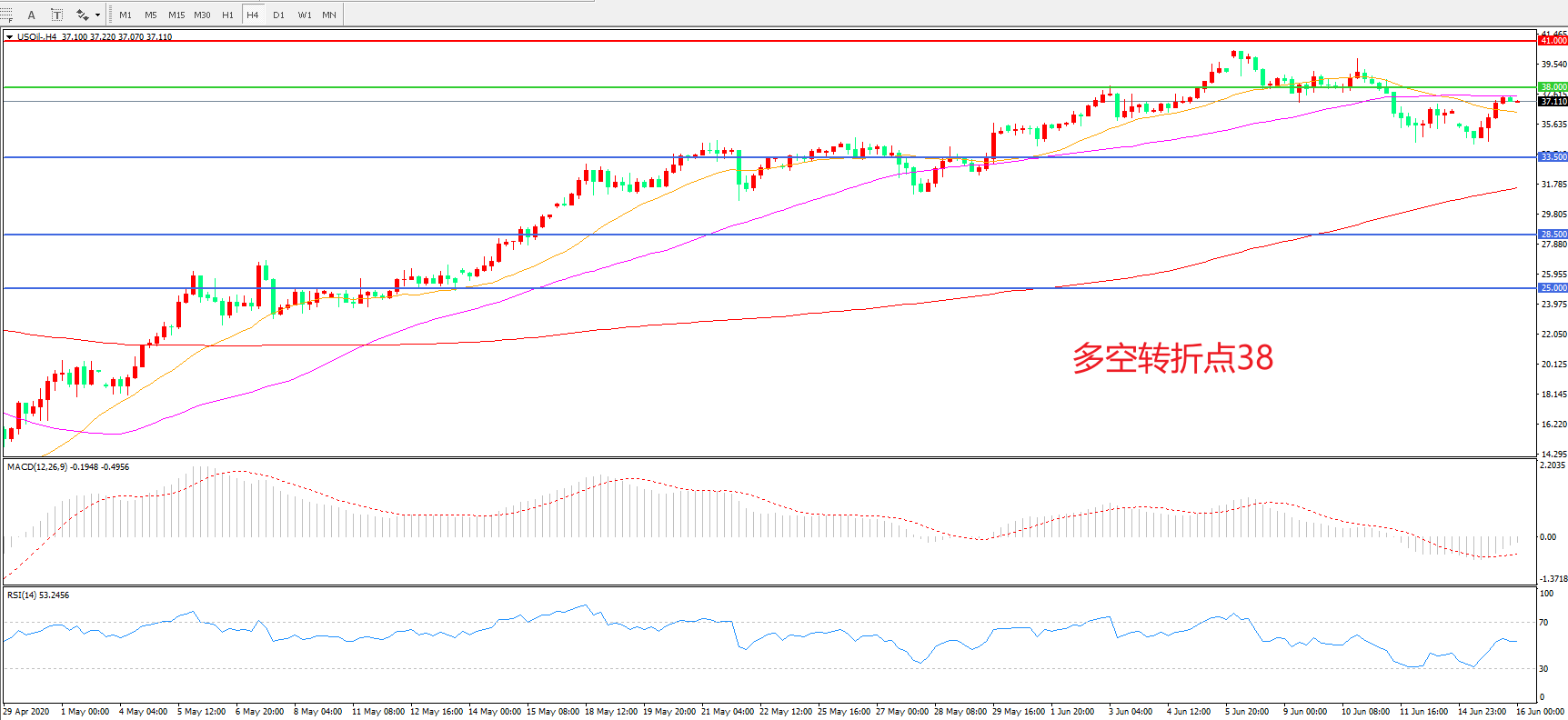 周一(6月15日),风险情绪仍然主导着市场短期走势,日内美股市大幅下挫,油价出现大跌,美盘时段股市又在美联储吹风下出现了从低位的大幅反弹,美国WTI原油逆市反弹,收报37.16美元/桶。OPEC减产执行情况乐观在一定程度上支撑了短期价格,但从长期看,疫情仍是影响价格变化的核心因素。