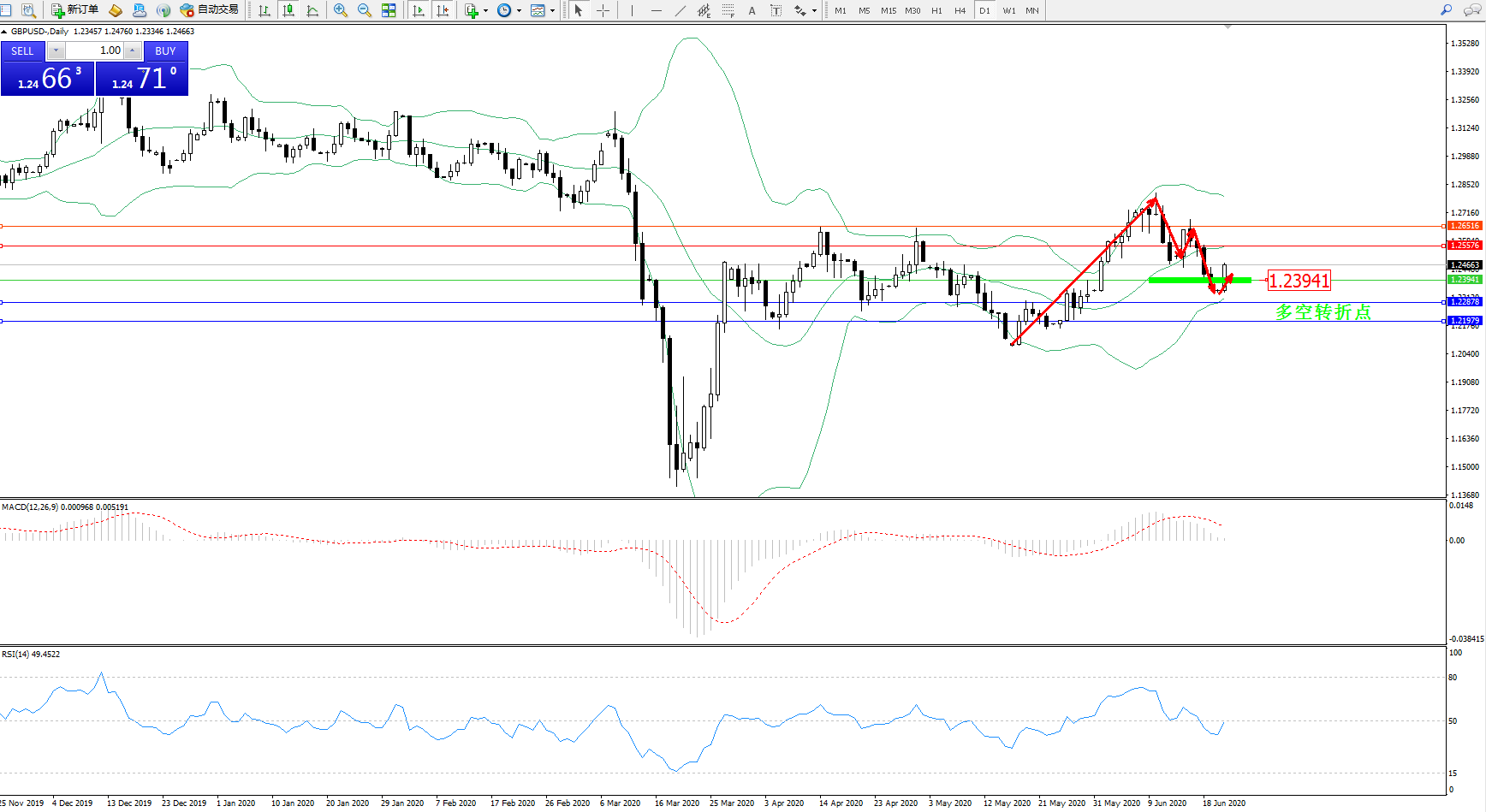 交易策略:1.23941上方看涨,目标1.25576、1.26516