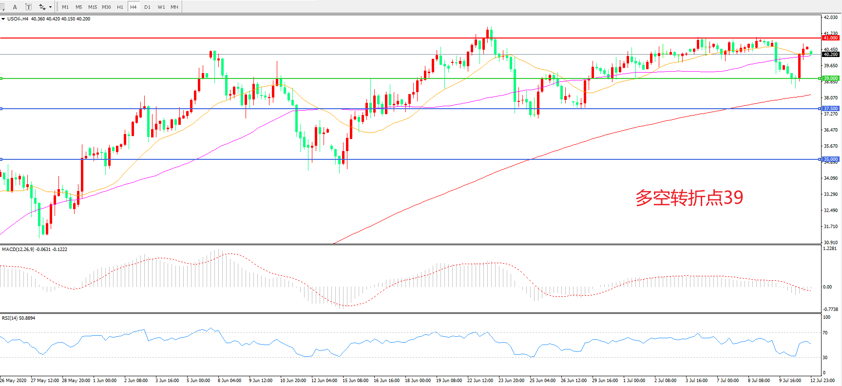 上周,因IEA上调2020年需求预测、贝克休斯钻机数量连续第18周下降,为油价提供支撑,美国WTI原油自低位反弹,收报40.56美元/桶。但市场担忧美国等地病例激增可能引发新封锁措施,抑制燃料需求,上方41美金仍存在明显阻力。