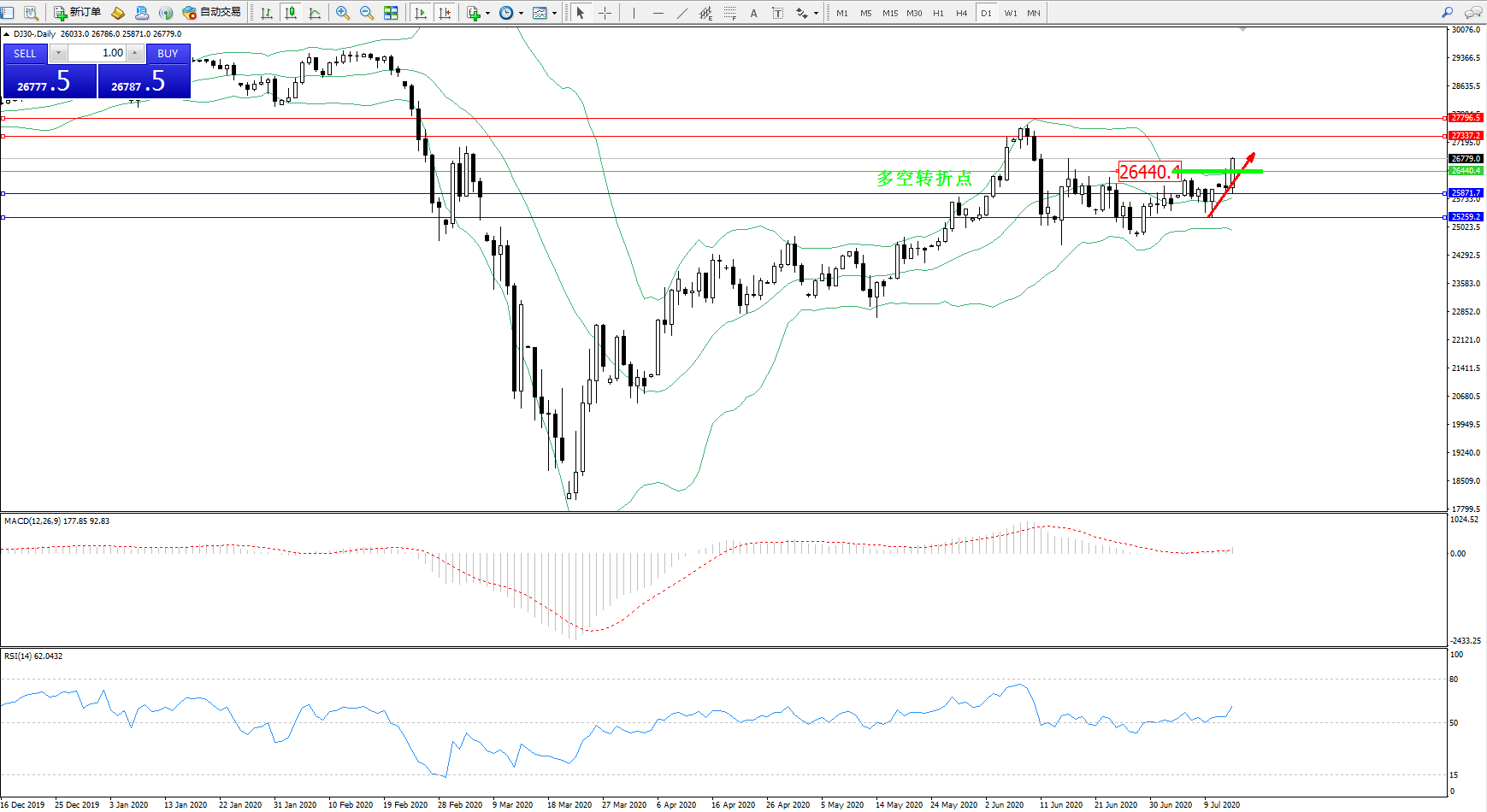 道琼斯指数714日(周二)收盘上涨556.80点,涨幅2.13%,报26642.59点。美股三大指数集体收涨,能源、原材料和工业股领涨。投资者评估企业季报以及疫情反弹的冲击。大型科技股盘初迈向5月中旬以来首个两连跌,企业可能在这个财报季实事求是,即便这是对V形复苏泼冷水。美国劳工部公布报告显示,美国6月消费者物价指数(CPI)出现近八年来最大的反弹,结束了连续三个月的跌势,通胀证据在CPI以外的指标中更好地体现出来。由于美联储和财政部采取了大规模新冠疫情刺激措施,预计通胀率将会上升。自3月底以来,经通胀调整的10年期TIPS收益率一直为负,目前为负0.797%,接近历史低点。