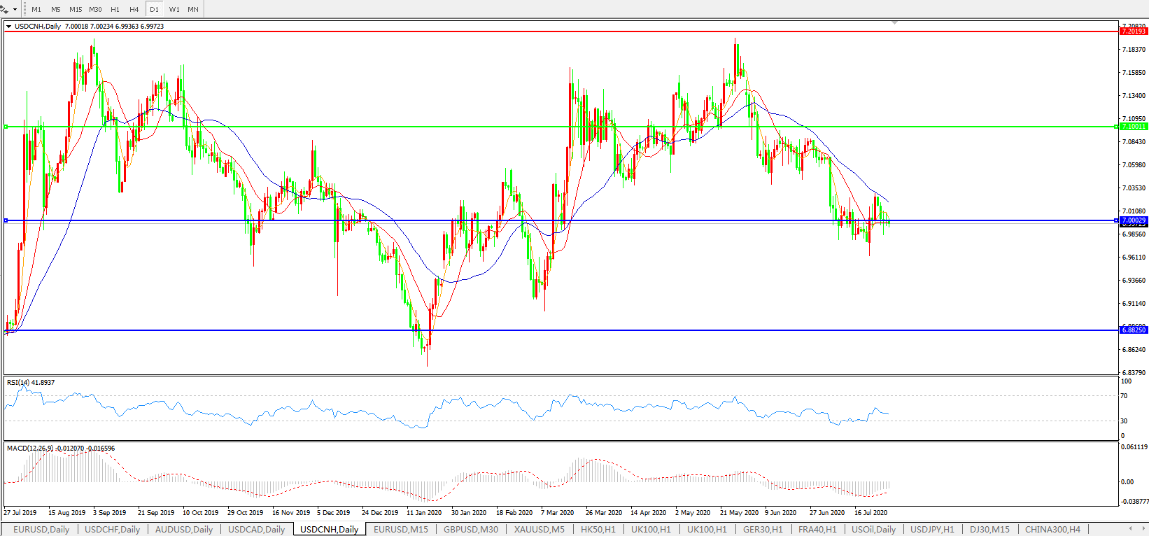 美元兑人民币USDCNH 日线图: