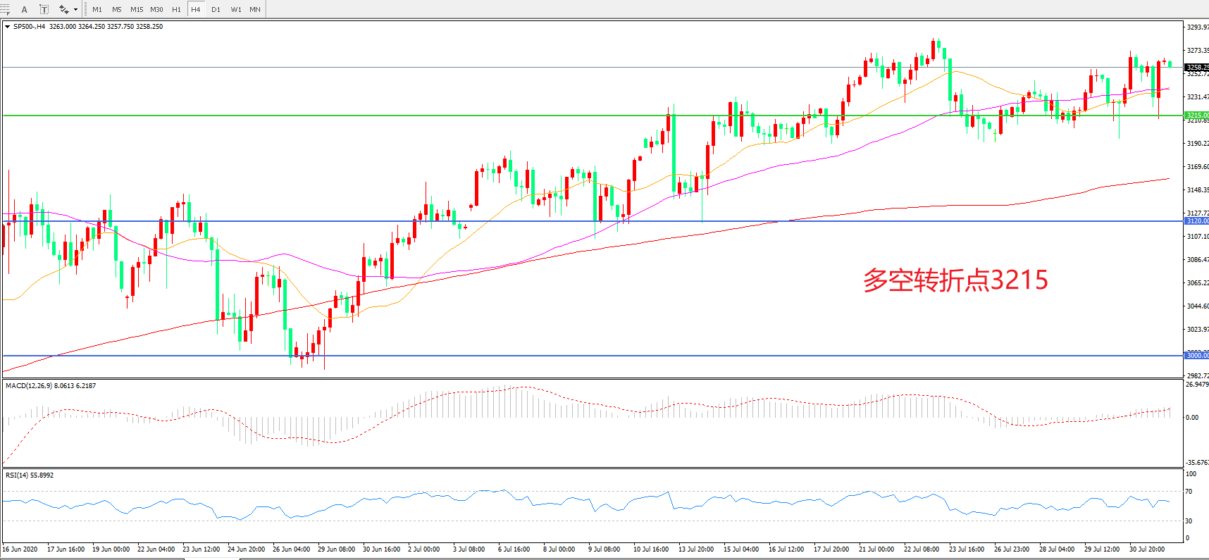 上周五(7月31日),美股早盘弱势下行,标普500一度大幅下挫,随后在科技股财报靓丽的推动下绝地反击,走出深V走势,收报3264点。七月收官,标普500累计涨幅5.5%,连续四个月录得上涨。
